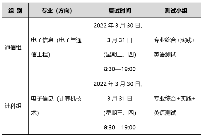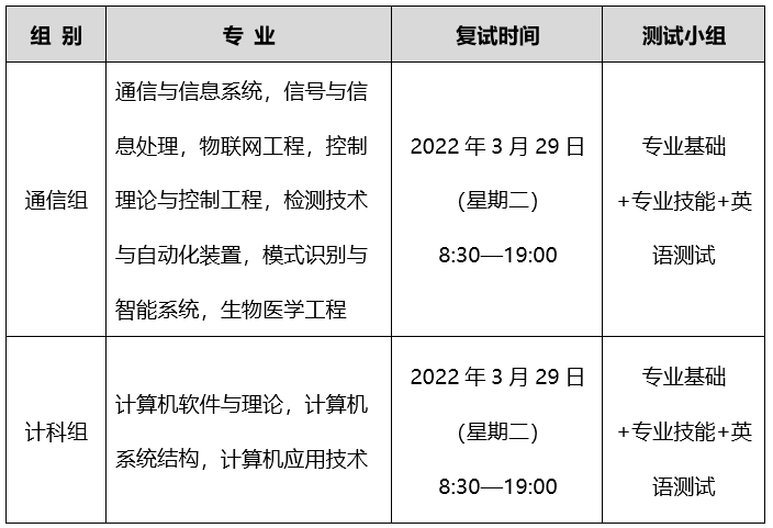 每位考生必须根据复试时间、报考专业和复试系统分配的考场,参加专业基础+实践+英语测试小组的复试。